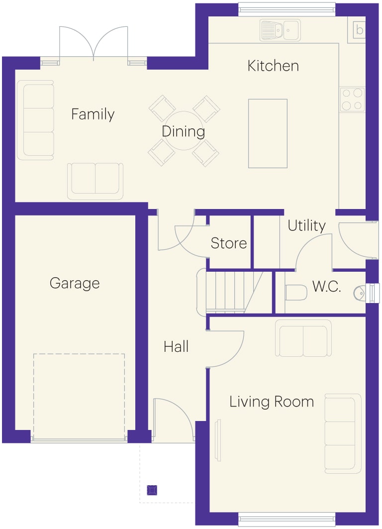 If you want a home with plenty of space, The Juniper is the home for you. On the ground floor the open-plan layout provides lots of room for busy family life. It boasts an open-plan kitchen/diner spanning the width of the home, featuring French doors leading to the rear garden. This space also has a desirable island feature and leads to a separate utility area and downstairs WC. Off the hall is a store cupboard and good size lounge.