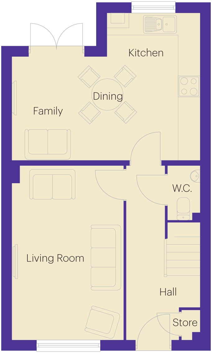 The Elder provides a modern living space which is ideal for growing families. It boasts a bright openplan kitchen/dining/family area to rear of the home with direct access to the garden via French doors. The ground floor also includes a good-sized lounge and a convenient WC off the welcoming hall, plus a storage cupboard which provides extra space for belongings.