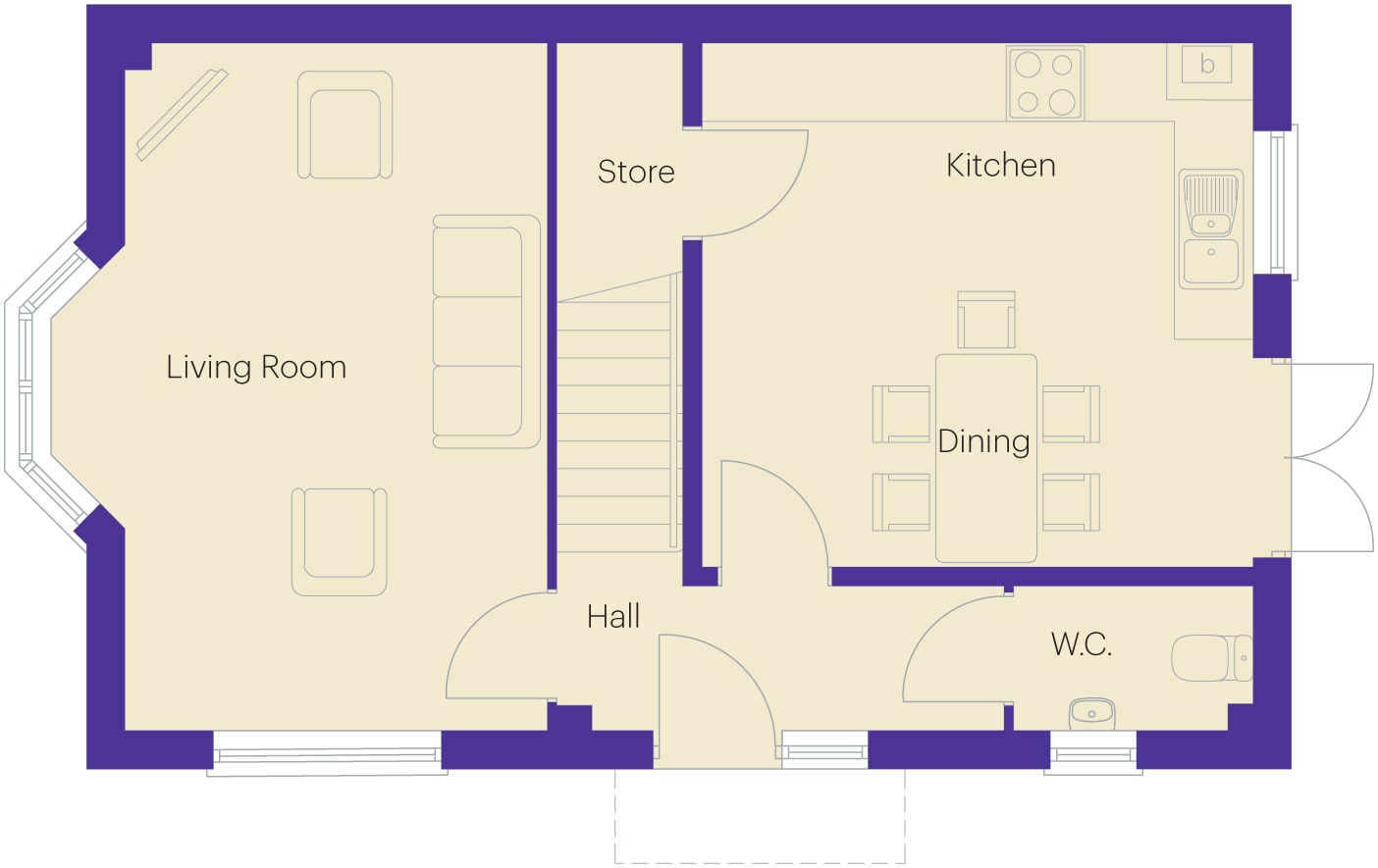 The Laurel has a welcoming hall which leads to a good size lounge complete with a bay window feature for added light, an open-plan kitchen/diner with a handy storage cupboard and French doors providing direct garden access, plus a desirable WC.