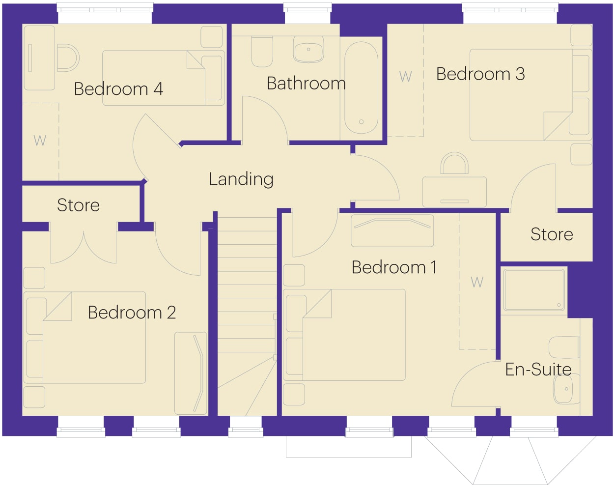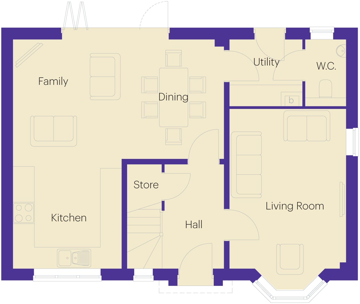 The Mitford really is the perfect family home. On the ground floor, the welcoming hall leads to an impressive open-plan, multi-purpose kitchen/dining/family area complete with bi-fold doors, which forms the heart of the home. This flexible space leads to a separate utility area with further garden access and a WC. Off the hall is an integrated storage cupboard providing space for belongings and a good size lounge with a beautiful bay window feature.