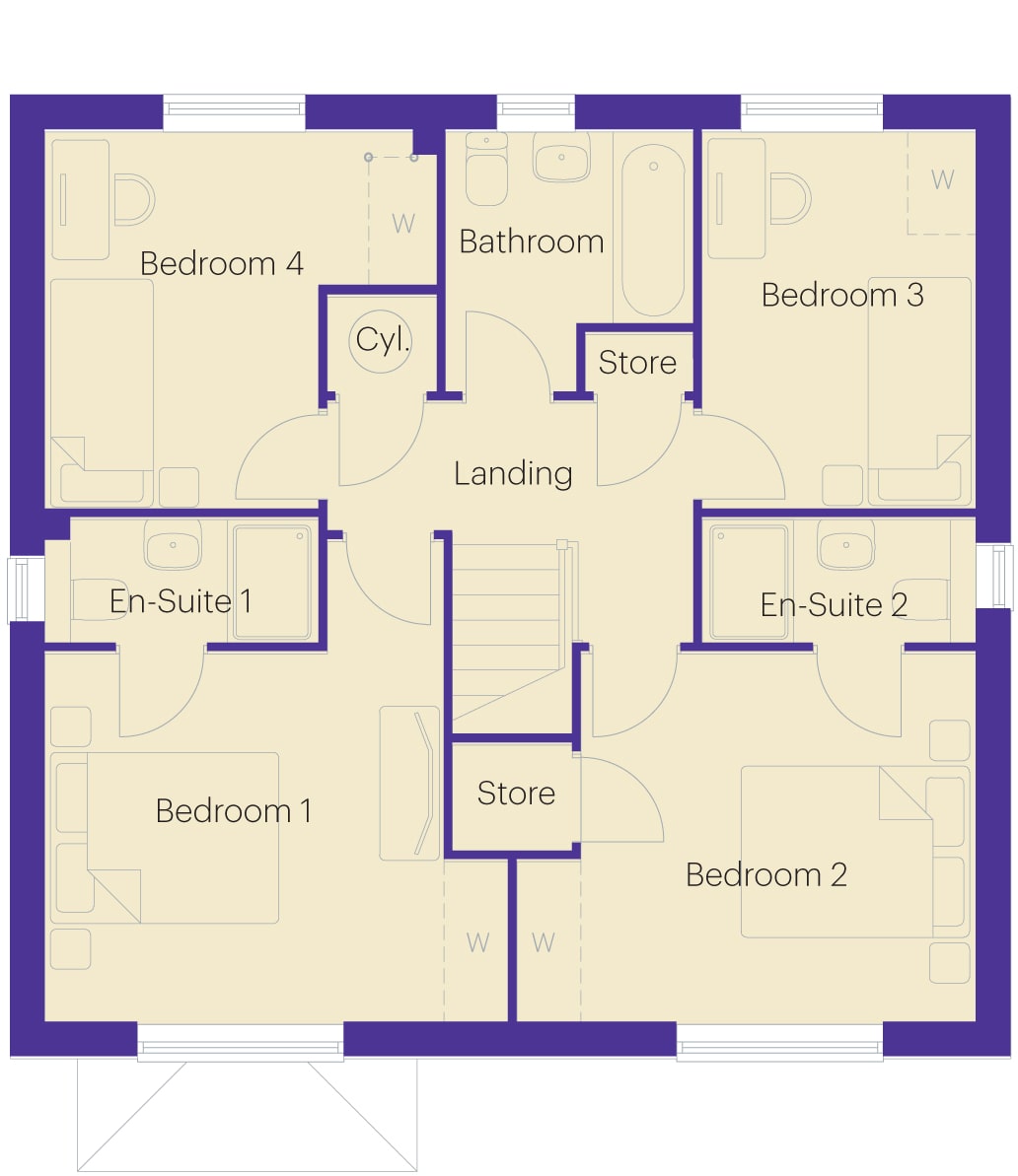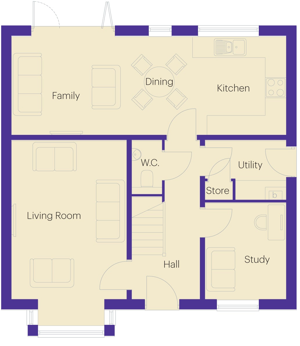 If it’s space and style you desire then The Sycamore is the home for you. There is an exceptional open-plan kitchen/dining/family area stretching across the rear of the home providing a multi-purpose living area featuring French doors which lead to the rear garden. Also off the hall is a convenient utility area leading to the garden, handy WC, study ideal for working from home and a spacious lounge benefitting from a bay window feature which adds further space and light.